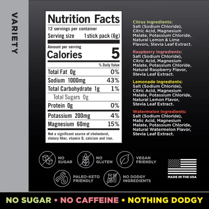 These are the same science-backed electrolyte amounts and ratios in each grab-and-go stick pack of LMNT. It’s the equivalent of our simplest product: LMNT Raw Unflavored. You can use the electrolytes above as a base to create your own recipes (add your own flavor), or simply follow this guide to recreate 4 of our most popular flavors.